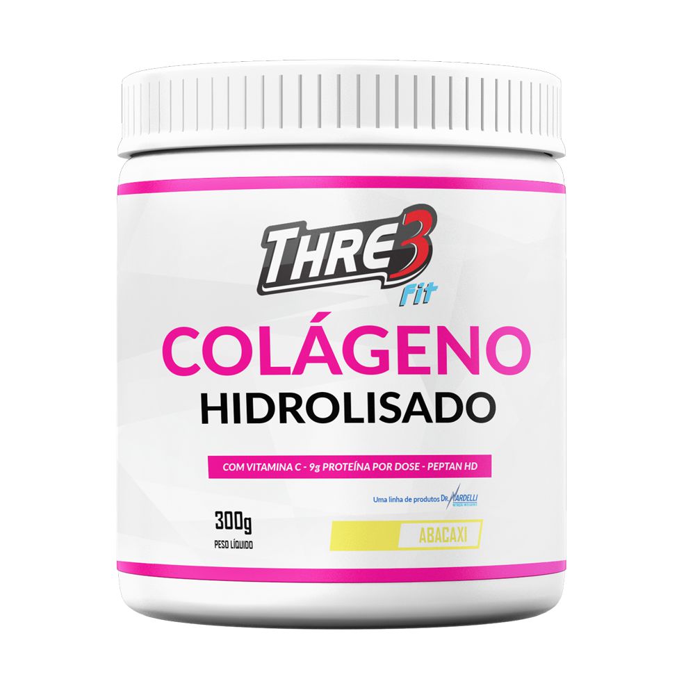 COLÁGENO HIDROLISADO em pó da Linha Thre3 Fit by Dr Nardelli Nutrição Inteligente contém Vitamina C, 9 g Proteína por dose e PEPTAN® HD.