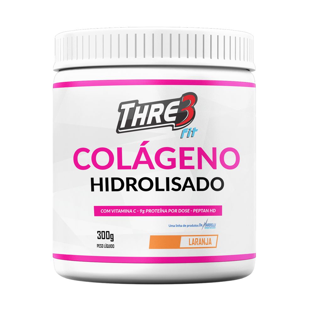 COLÁGENO HIDROLISADO em pó da Linha Thre3 Fit by Dr Nardelli Nutrição Inteligente contém Vitamina C, 9 g Proteína por dose e PEPTAN® HD.
